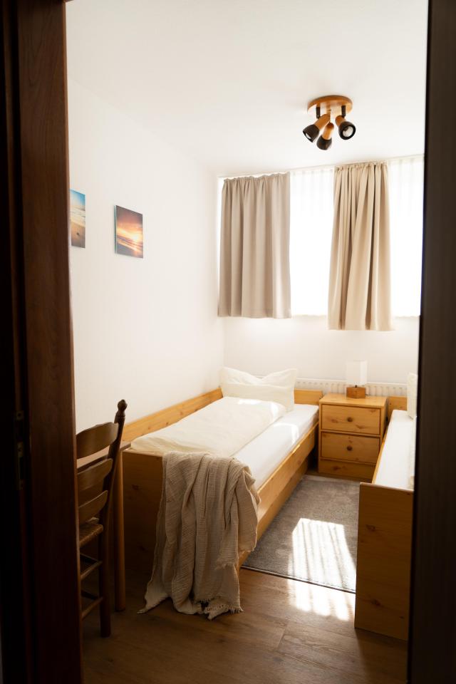 1 Wohnraum mit Kochzeile, 2 Schlafzimmer (ein Schlafraum mit Doppelbett und Kinderbett, das andere ist ein Zweibettzimmer)