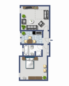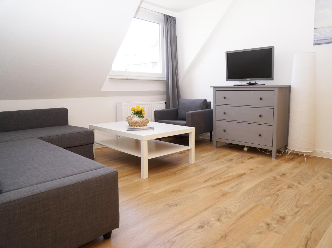 1 Schlafzimmer mit Doppelbett, separater Wohn/Schlafraum mit Schrankbett für 2 Personen und Sitzgruppe, sep. Küche mit Essecke, Badezimmer mit DU/WC und Badewanne, Flachbild-TV, CD-Radio, Mikrowelle, Geschirrspüler, Blick über Insel