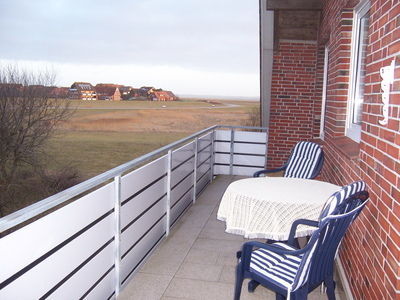 Frisch renovierte 2 sep.Schlafzimmer davon eins mit Doppelbett und eins mit Doppelstockbett, sep. Wohnzimmer mit Balkon, sep. Küche mit Geschirrspülm., DU/WC, Flachbild-TV, CD-Radio, Blick über Insel und Wattenmeer