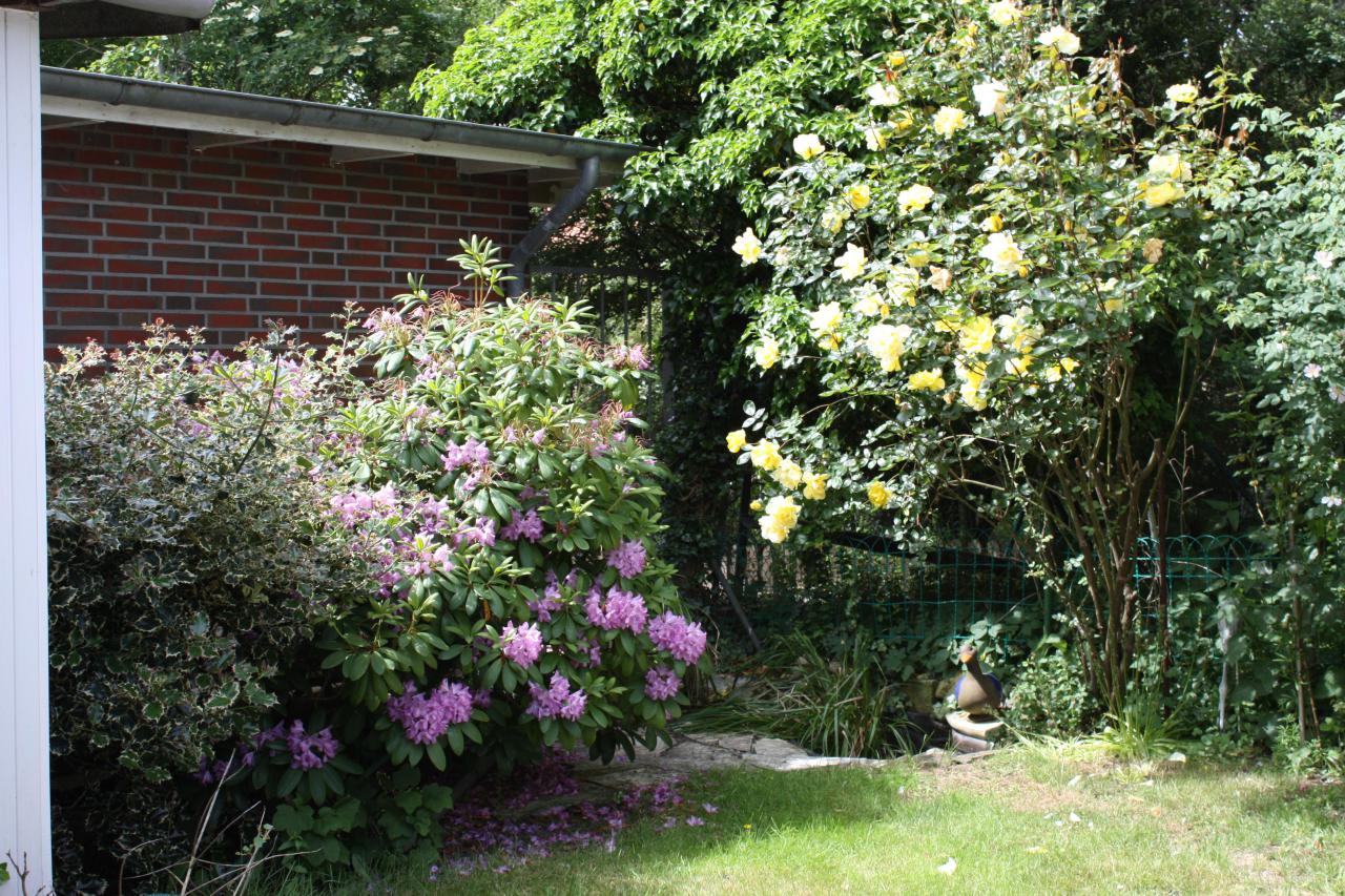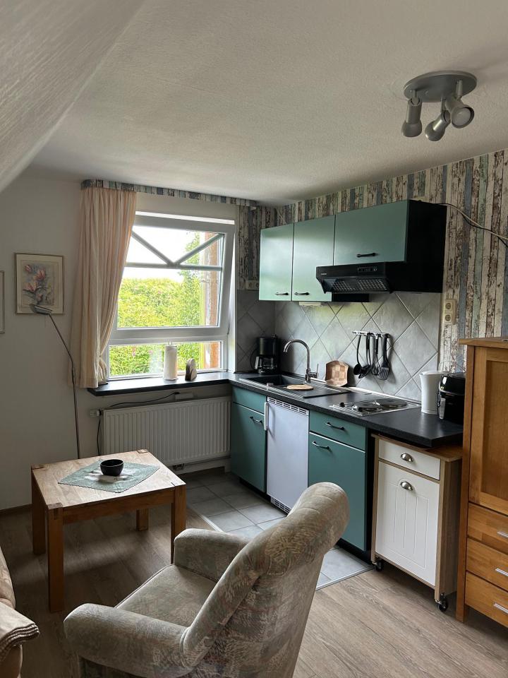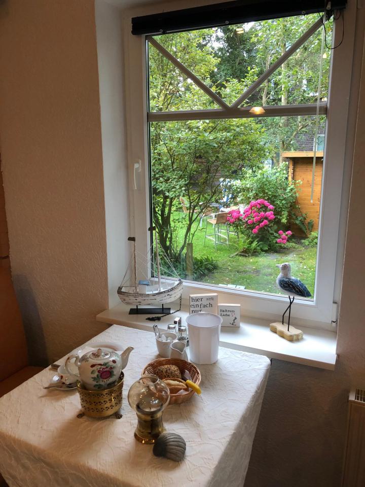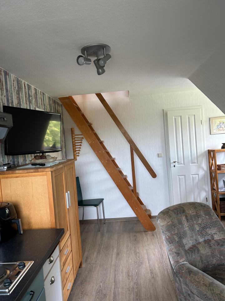 Wohn-/Schlafraum mit Essecke, Sat-TV, stabiles WLAN, Radiowecker, Kaffeemaschine, Toaster, Schlafraum über eine Raumspartreppe, Garten mit Liegewiese und Sitzecken, Frühstücksbüfett buchbar.