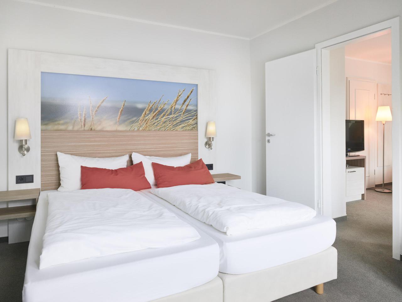 32-39 m², inkl. Frühstück, großzügiger Balkon mit mit Blick auf das Wattenmeer und die Salzwiesen, Dusche/WC, Flachbild-TV/Radio, W-LAN kostenfrei, Wohnbereich mit Sessel & Couch, Restaurant im Haus