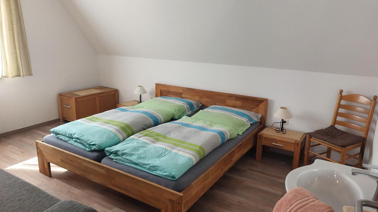 zwei Schlafzimmern mit Doppelbett (Kinderbett zustellbar) und Couch.