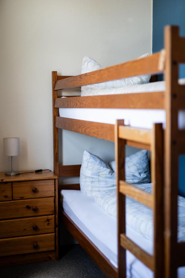 1 Wohn/Schlafraum mit Kochzeile mit Backofen, 2 Schlafzimmer (1 Schlafzimmer hat Doppelbett, der andere ein Etagenbett), teils Meerblick